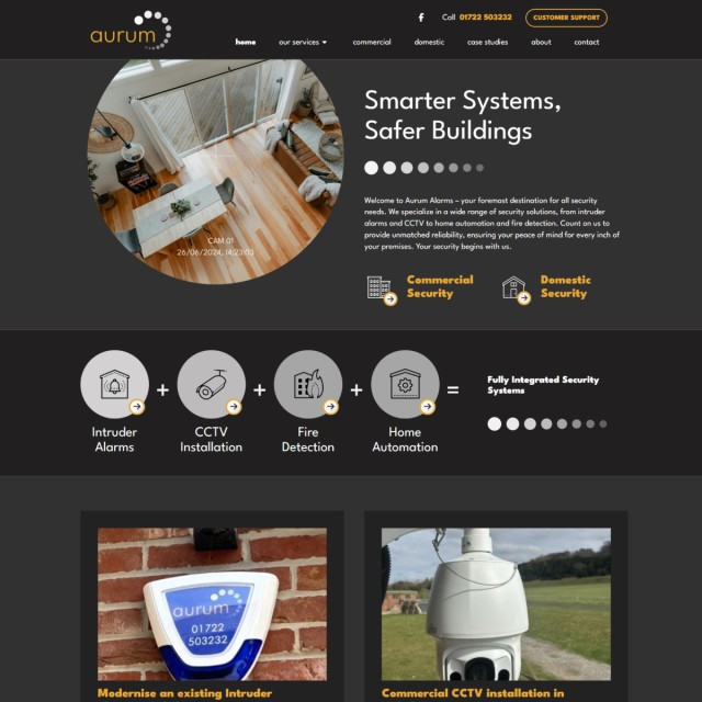 Aurum Alarms, a leading provider of security solutions, recognized the need to overhaul their outdated website. Specializing in intruder alarms, CCTV, home automation, and fire detection, Aurum Alarms' decade-old website no longer reflected their brand and comprehensive service offerings. They approached Webbed Feet to create a new, dynamic website design that would effectively represent their brand and attract both domestic and commercial clients.