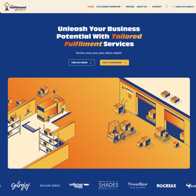 The primary goal for The Fulfilment People was to create a new custom logistic website on WordPress that effectively represents their brand and services. This project included developing a new brand identity, designing a logo, and creating custom illustrations to highlight the ‘people’ element of the business. The human-centric approach sets The Fulfilment People apart in the logistics sector with their personalised and dedicated service.