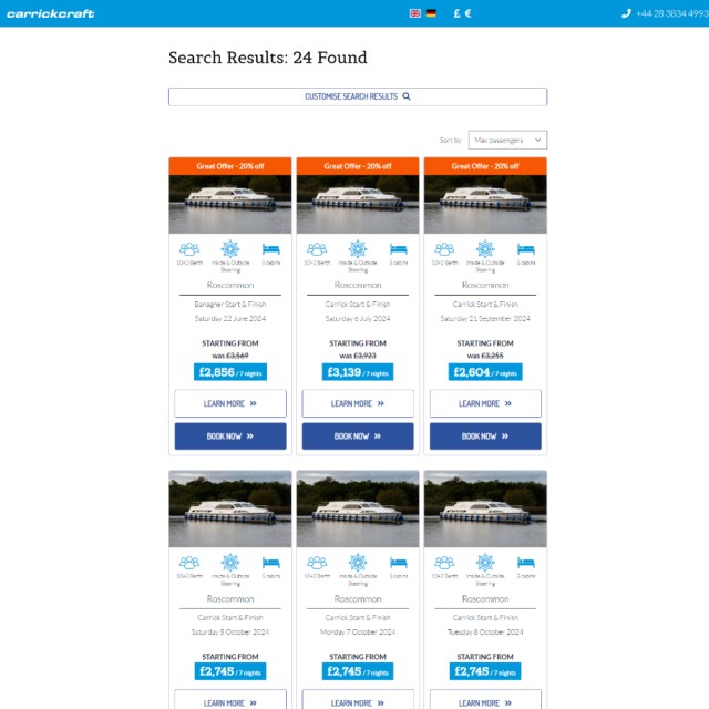 The newly developed customer booking system has significantly streamlined the booking process for Carrickcraft, ensuring a user-friendly and efficient experience for their customers. By reducing drop-outs and boosting upselling of extras, the new system has resulted in an improved return on investment for Carrickcraft.