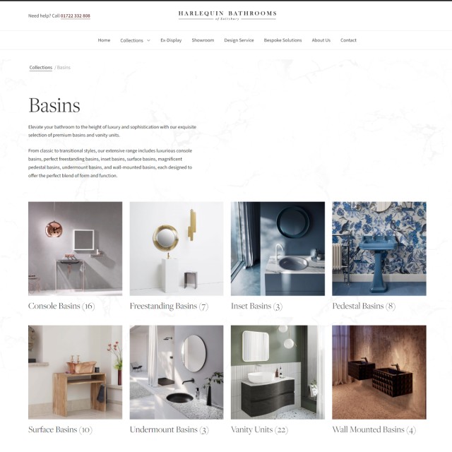 Additionally, the website introduces the bespoke section of the website which is where Harlequin Bathrooms details thier unique service. Customers can personalise their bathroom items to meet their unique preferences.
