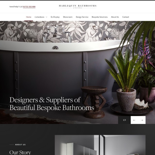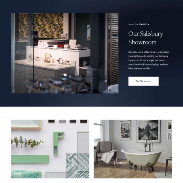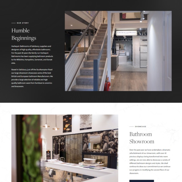 Which leads us onto the bathroom design service and full installation. It was important to showcase this as our client offers a full rounded service from design to installation. By emphasising the showroom and the personalised service they offer, Harlequin Bathrooms can differentiate itself from competitors who lack a physical presence.