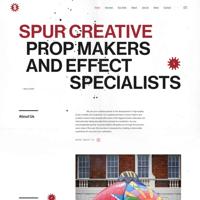 Spur Creative Workshop are in fact ‘creative’. It’s in the name. So the new website design needed to be creative so like minded users will instantly engage with the website. To do this we decided to have a large font introduction animating in to say exactly what the client does which instantly grabs the attention of the user.
